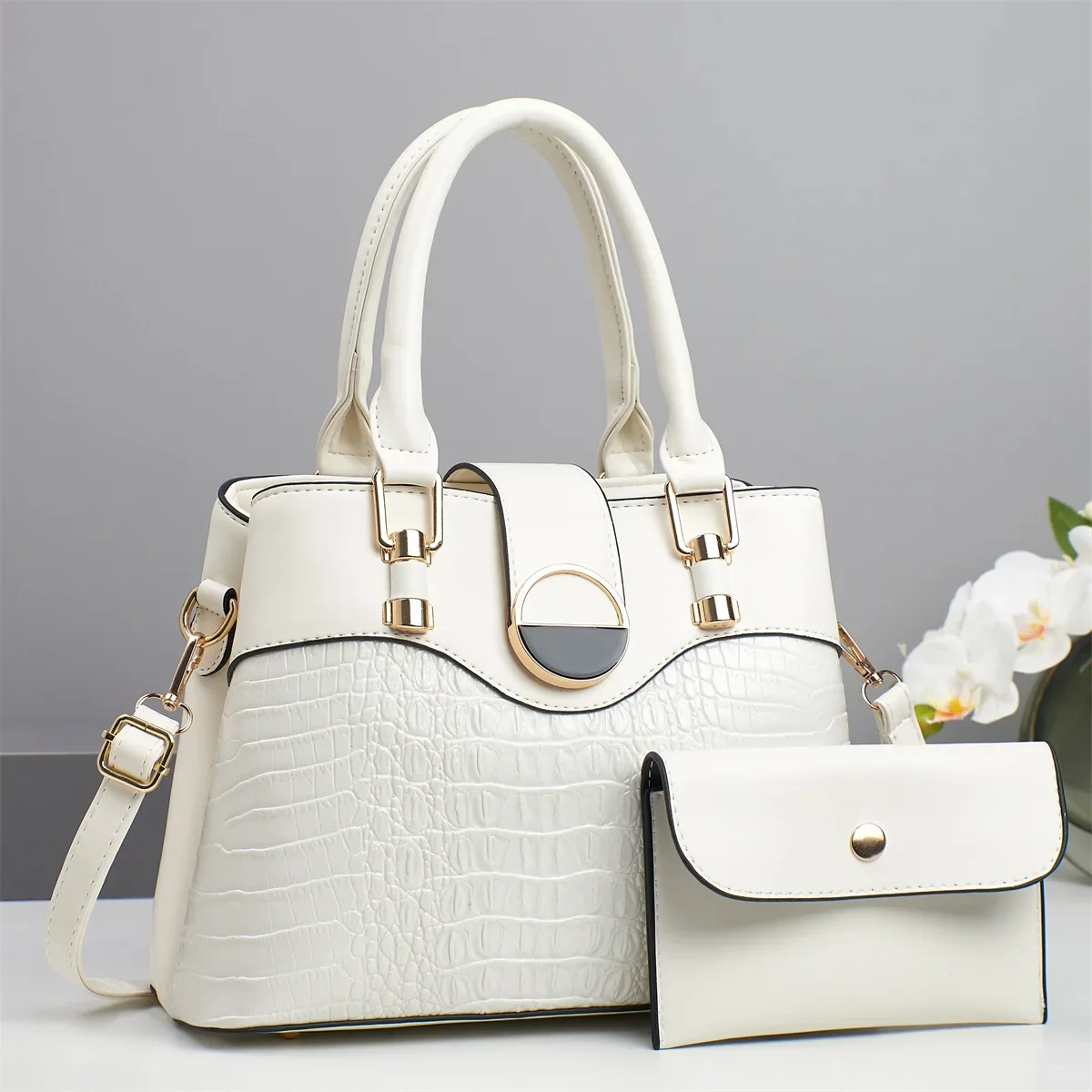 Conjunto Bolsa Feminina de Ombro e Transversal – Estilo Patchwork, Grande Capacidade e Padrão Croco - ZAUVELLE